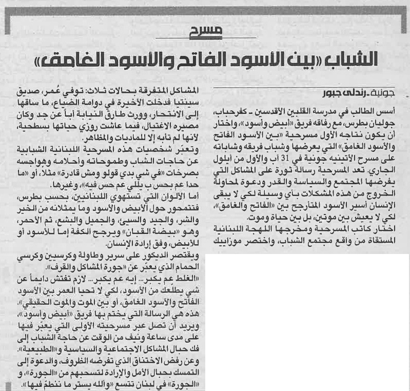 "Bayn el aswad el fetih wel aswad el ghame'" tells the story of three characters ASSISTANT DIRECTOR Romy Aoun